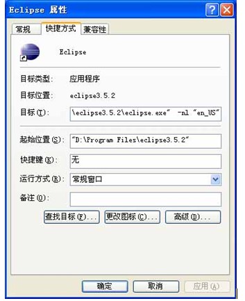 如果還需要使用英文版的話,對快捷方式右擊進行如下設置